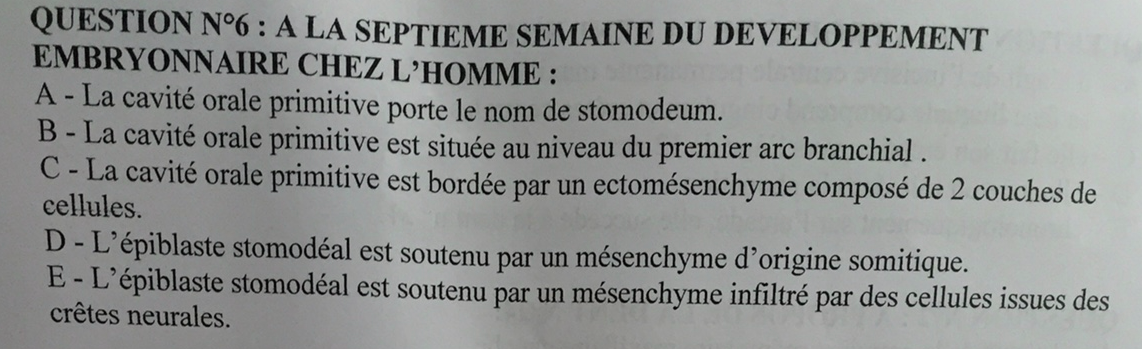 aloa Posted May 16, 2016 Posted May 16, 2016 Bonjour, j'ai un problème avec cet énoncé, car il parle de la 7ème semaine de développement. Or dans les annales précédentes, ce qcm était déjà tombé mais c'était à la 4ème semaine de développement. Du coup, est-ce que la réponse A,B et D sont toujours exactes ? et est-ce que la E est aussi exacte ? Merci