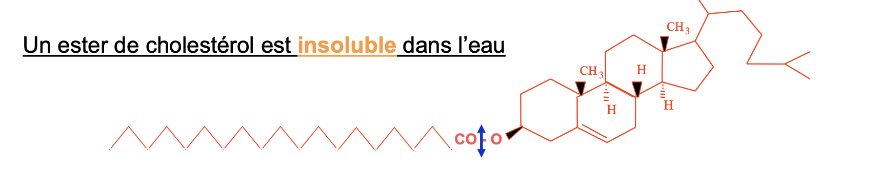 Solution Izaa Posted December 15, 2023 Solution Posted December 15, 2023 Salut @Naëlatence, dsl pour la réponse tardif, mais enft la réaction de saponification ne se résume en effet pas qu'aux TG. Pour rappel, la réaction de saponification ou hydrolyse alcaline douce avec du NaOH (soude) ou du KOH (potasse) permet d'hydrolyser une liaison ester (R-COO-R') en un ion carboxylate (COO− ) et un alcool (OH). Donc tous les liaisons esther des lipides sont sensibles à l'hydrolyse douce, à savoir: - Les triglycérides : Après hydrolyse alcaline, tu obtiens des sels d'acides gras (savons alcalins)+ un glycérol : + -L'ester de cholestérol (molécule de cholestérol estérifié par un AG): Après hydrolyse alcaline, tu obtiens un sel d'acides gras (savons alcalins)+ un cholestérol: + Pour la molécule du QCM, il s'agit d'une phosphatidylcholine, tu vois quelle a des liaisons ester qui relie les AG au glycérol donc après hydrolyse alcaline, tu as bien la formations de sels d'acides gras (qui sont des savons alcalins) + un glycérol-phosphate-choline . C plus clair pour toi?? dsl la dernière image est de trop, n'y tient pas compte!!!!! et le cholestérol a bien un fonction alcool, il est en rouge pas en vert (dsl je me perd donc mon marquage couleur) Naëlatence, Sanchez and Sérotonine 2 1 Quote