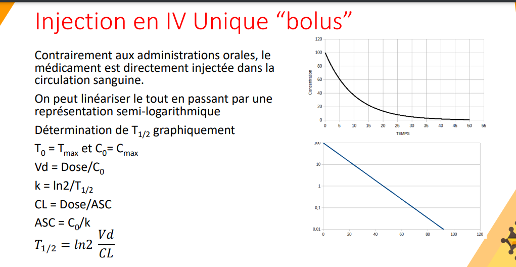 Solution HippoGratte Posted February 10, 2024 Solution Posted February 10, 2024 Il y a 2 heures, MensSanaCorporeSano a dit : Hello, j'ai fait ça : Je me suis dit que c'était ok d'enlever CL vu que j'ai lu qu'il était propre à l'individu. Et du coup j'ai dis une bêtise j'ai trouvé F.Dorale / Dorale oui donc tu trouves à la fin F = F non Si tu simplifies les 2 Dorale du F.Dorale / Dorale. Cela rend ta formule bonne vu qu'en remplaçant tout, t'obtient l'égalité parfaite !! Il y a 2 heures, MensSanaCorporeSano a dit : Hello, J'ai encore une question sur cette diapo Est ce que ASC de cette diapo = ASCIV de ici donc est ce que C0 / K = DIV / CL et pour ta deuxième question, oui tu vois bien que la courbe au temps t0, commence à C0 qui n'est pas égale à 0 (donc cela ne peut pas être une prise orale) donc tu peux utiliser cette info pour faire l'équation C0 / K = DIV / CL qui sera bonne !! (cependant j'ai jamais vu d'annales où il y avait ce genre de raisonnement donc il n'y a pas trop de danger de ce côté ci si tu veux mon humble avis...) Si tu as d'autres questions ou si je n'ai pas été assez clair, n'hésites pas à me le faire savoir, c'est un chapitre pas évident Passe une bonne soirée !! MensSanaCorporeSano and Passifacile 1 1 Quote